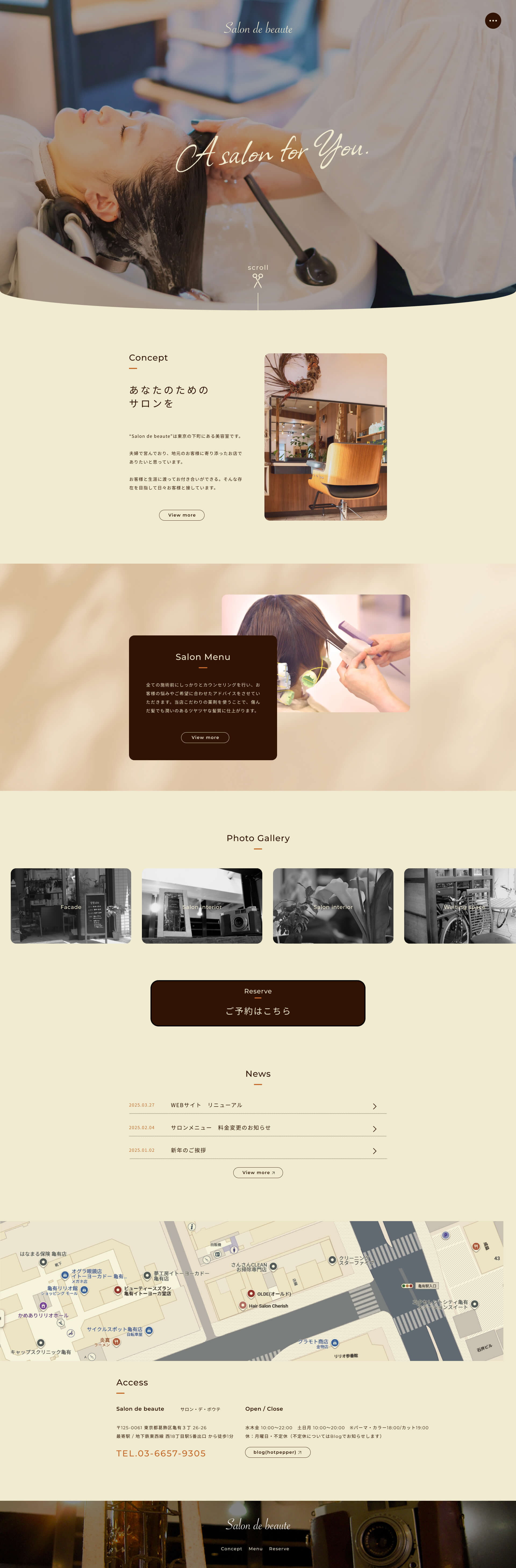 お店のコンセプト『あなたのためのサロン』がより伝わるようなサイトがほしい。